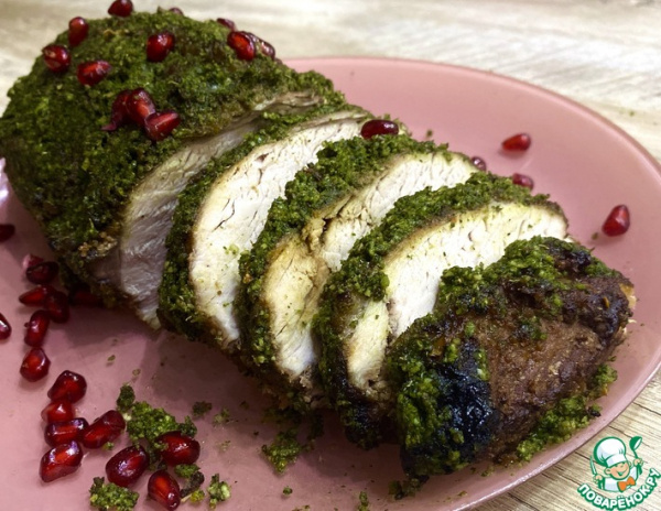 Мясо выходит весьма ласковым, сочным с нотами лимонка и изюминкой — мятным соусом
