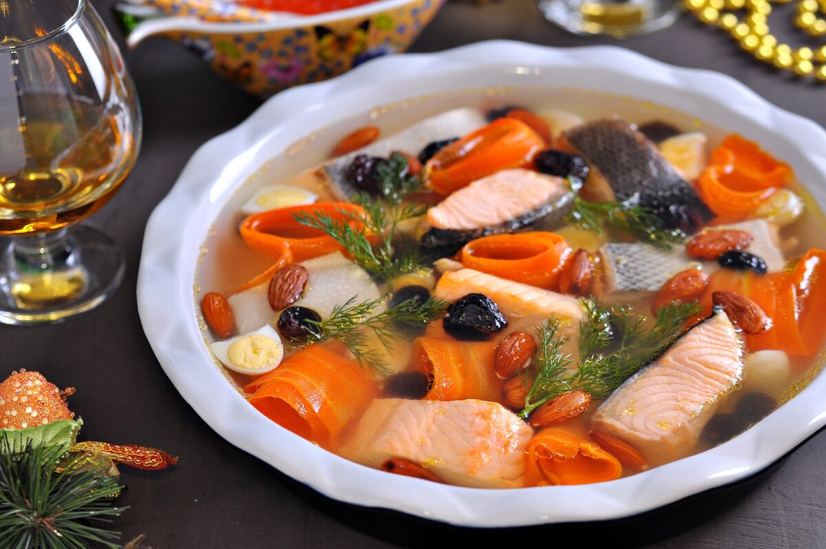 Впереди большой и чудесный праздник — Новый год, а за ним последуют большие выходные и Рождество. И многие уже начинают придумывать меню праздничного стола. Мясной холодец, как правило, неизменно присутствует на новогоднем столе. Но заливное из рыбы — это еще одно прекрасное блюдо на праздник и не только. Если приготовить его правильно, то вы несомненно покорите своих гостей его прекрасным вкусом. На первый кажется сложно, но это совсем не так. Заливное из рыбы имеет особый пикантный и нежный вкус, попробовав однажды, вы не сможете устоять.