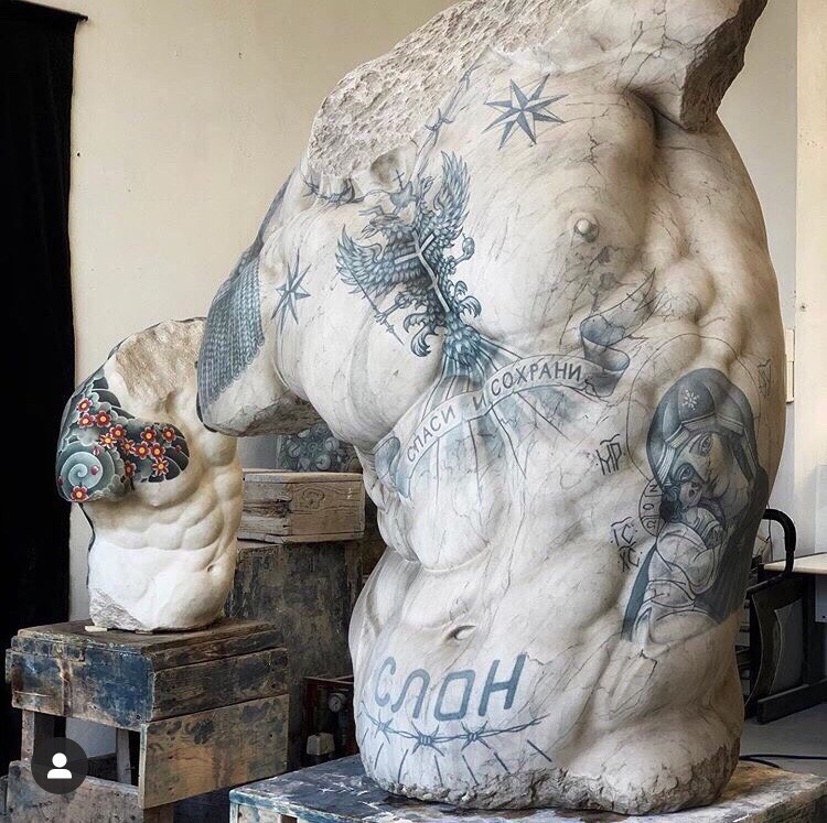 Итальянский скульптор Фабио Видале создает татуированные статуи. Вдохновил его на это бывший российский зэк.
