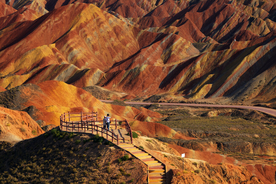 Цветные скалы которые находятся в провинции Ганьсу, Китай.