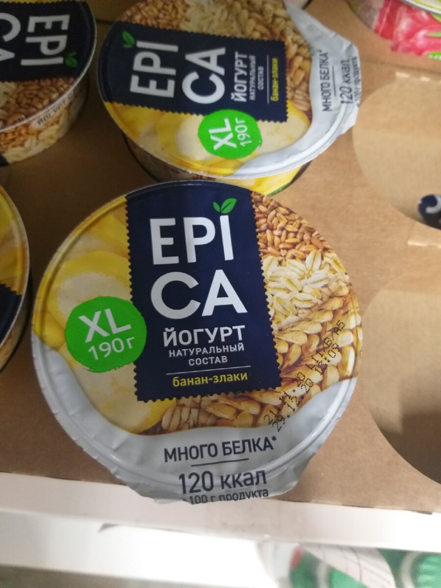 Йогурт "Эпика" банан-злаки. Новинка в нашем Светофоре. Большая баночка XL 190 грамм. Жирность 4.8%. БЗМЖ.