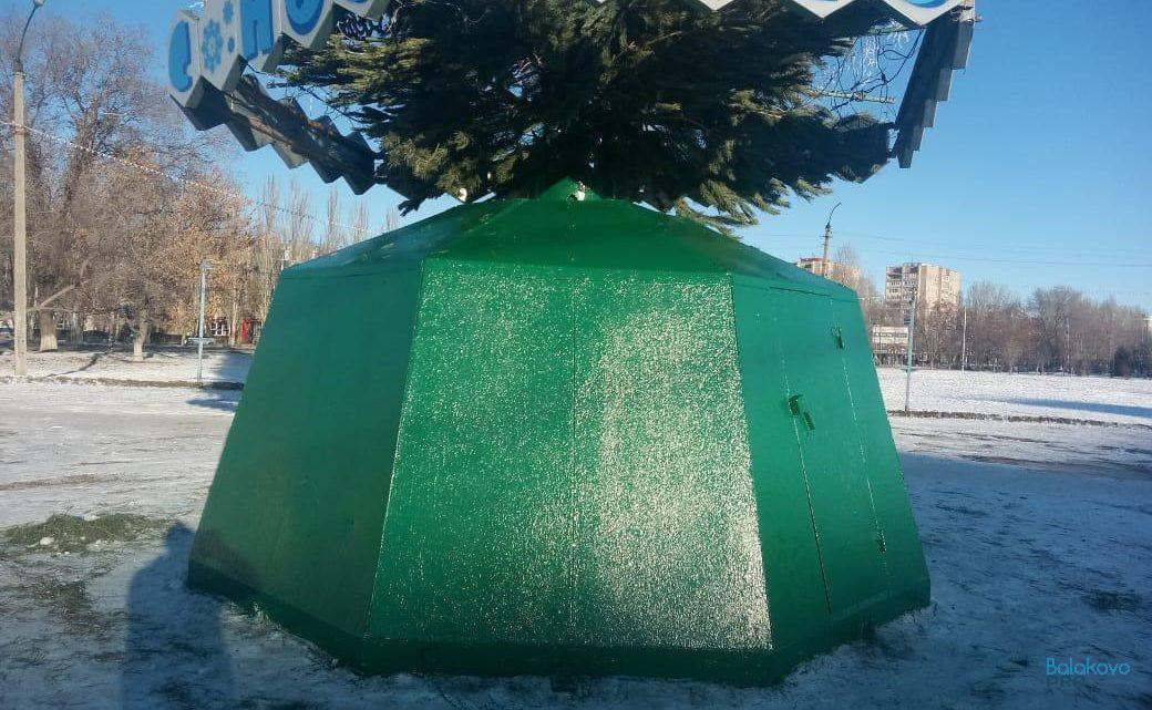 Вчера директор муниципального “Комбината благоустройства” Николай Сульдин сначала сказал, что ее специально не красили до новогодних праздников, так как вандалы все равно разрисуют. Но сегодня он прислал в редакцию ProBalakovo фотографии, основание городской ёлки все-таки покрасили.