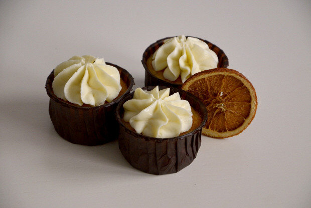 3. Когда капкейки остынут, украсить кремом. Шоколад растопить, остудить, смешать со сливочным сыром и ванильным сахаром.