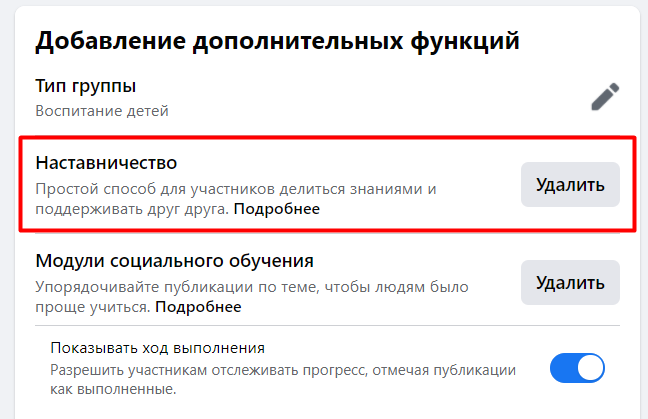 Функция наставничества/менторства появилась в группах в Фейсбуке где-то год назад. Естественно не у всех сразу.