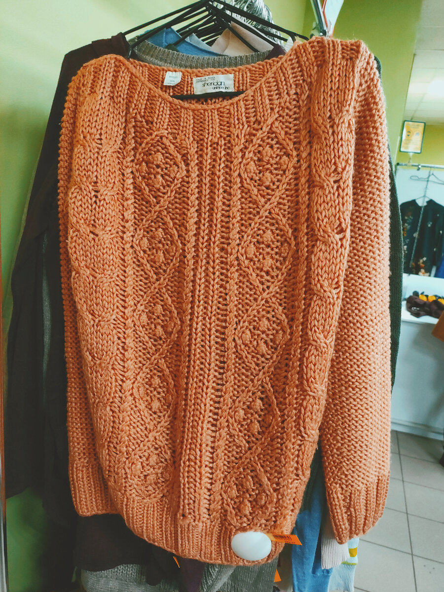 Всем привет! Меня зовут Маша Лещ. Я живу в городе Санкт-Петербурге. Делаю обзоры из магазинов секонд-хенд. Очень люблю это дело. Рассказываю про находки, ассортимент, показываю примерку и покупки. Как сочетаю вещи в жизни, как ухаживаю и перешиваю. А так же вас ждет много всего интересного. Я люблю кофе, а следовательно и коричневый цвет. Цвет кофейных зерен, шоколада и камыша. Люблю его в одежде и в интерьере. Сегодня, специально для вас, я сделала подборку различных вещей из секонда кофейного цвета. Приятного просмотра! Классный свитер оверсайз, очень нравится рисунок и вырез на шее. Решила сфотографировать его ближе, для статьи и маме отправлю. Может она сможет связать мне подобный свитер. Это свитер как кофе латте. И пенка. Очень нежное сочетание цветов. Размер оверсайз. Очень мягкие на ощупь. В отличном состоянии. Сапожки 38 размера. Вот эта ажурная вставка очень милая. Кружево. Но наверное только на сухую погоду. На одном из сапог немного окрашено кружево. Видимо лежало в м