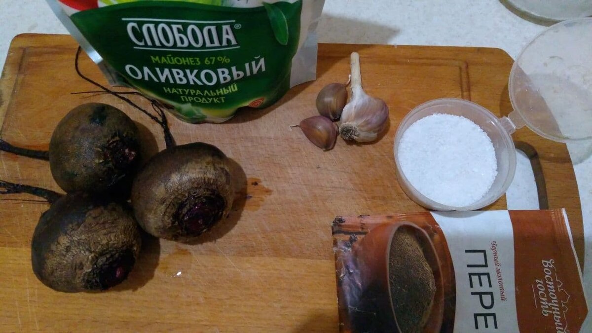 1. Подготовить все ингредиенты. Свеклу помыть, поставить вариться на примерно 1 час.