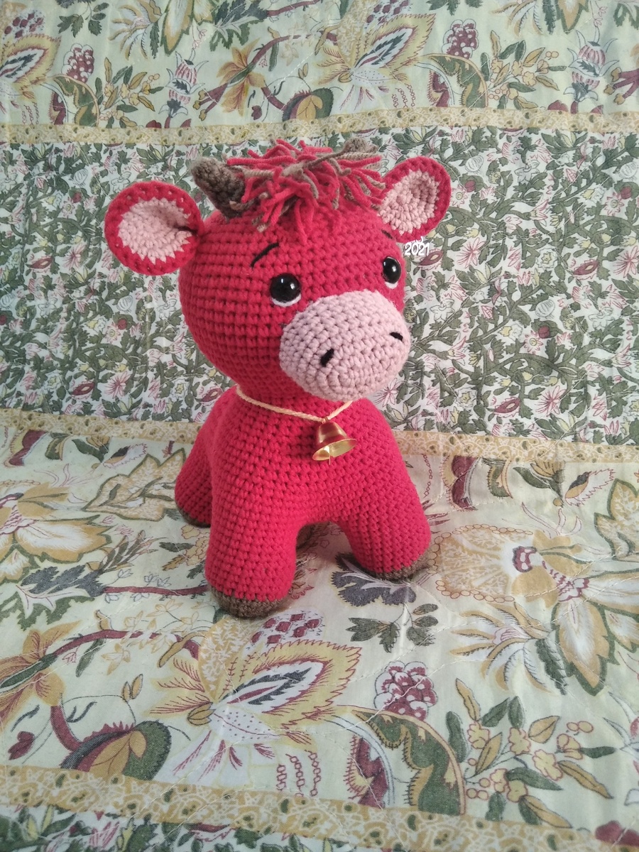 Вязаный бычок ручной работы, связан из полухлопка, глазки на безопасном креплении, рост 20см.