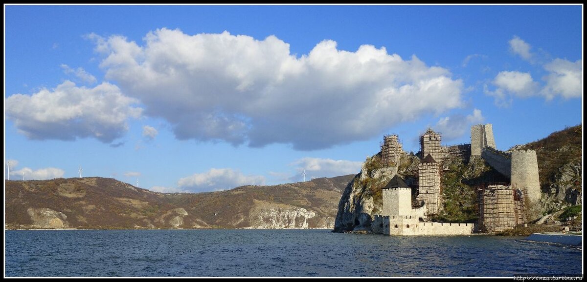 Первый раз мы приехали в Голубац в 2012 г. Тогда здесь только начиналась грандиозная реконструкция, а Голубац был дик и прекрасен. Все три его града заросли ежевикой, да смолёвкой, деревянные лестницы сгнили в труху, крыш у башен не было, а со стен нет-нет, да и падали незадачливые туристы. Сейчас реконструкция с бюджетом в 6,6 млн евро в самом разгаре и уже можно оценить некоторые её итоги. Однако, для начало всё-таки еще раз вспомним историю крепости. Стоит крепость в месте, которое по праву считается одним из самых красивых в Европе и называется тоже весьма эффектно – Железные ворота. Железные ворота – место, где скалы Карпат сходятся со скалами гор Стара-Планины, оставляя проход шириной всего 160 м. Вот в это бутылочное горло и приходится втискиваться Дунаю, ширина которого перед воротами почти 6 км. Выглядит это вот так. Слева – Румыния, справа – Сербия, в центре кадра – Железные ворота. Лучшего места для крепости, которая должна была контролировать судоходство на Дунае, даже представить сложно. Не удивительно, что приметили это место еще римляне. Однако от их укреплений сейчас ничего не сохранилось. А нас же интересует крепость средневековая, которая стоит здесь до сих пор. О том, кто начал строить Голубац на месте старого римского форта, мало что известно. До недавнего времени не могли даже точно сказать, сербы это были или венгры. Сходились лишь в том, что строительство началось во второй половине XIII в. — начале XIV в. и первые строители точно были христианами, так как в одной из башен были обнаружены остатки часовни. Теперь, благодаря последним археологическим находкам, считается, что первенство всё-таки принадлежит сербам. Хотя первые письменные упоминания о Голубаце встречаются в венгерских источниках, датируемых 1335 г. Предположительно, некоторое время Голубацем мог владеть последний независимый правитель Сербии, Лазарь Хребелянович. Однако в 1389 г., сразу после Косовской битвы, в результате которой Ларазь был убит, а Сербия попала в вассальную зависимость к туркам, крепость отошла Баязиду I. Затем Голубац попал к венграм, которые передали его в 1403 г. сыну Лазаря Хребеяновича, Стефану Лазаровичу, признавшему их вассалитет. По договору, после смерти Стефана, Голубац, как и Белград, должны были вернуться к венграм. Однако по непонятным причинам тогдашний комендант крепости, князь Иеремия, сдал крепость туркам. Венгры несколько раз пытались отбить крепость. В ходе одной из таких попыток в 1428 г. под стенами Голубаца был захвачен турками и убит рыцарь польского происхождения Завиша Черный, герой Грюневальдской битвы и признанный образец средневековой доблести и чести. Жизнь и подвиги Завиши описаны в романе Г. Сенкевича «Крестоносцы» и А. Сапковского «Башня шутов», а под стенами Голубаца есть источник, который назван в его честь. Лягушки в этом источнике почти волшебные. В 1444 г., после подписания между христианами и Мурадом II Сегединского мира, Голубац ненадолго перешел к сербам. Однако в 1456 г., после смерти сербского деспота Джураджа Бранковича, крепость вновь стала османской. В 1481 г. Голубац ненадолго отбили венгры во главе с королем Матьяшем I. Отметились здесь и австрийцы, которые владели Голубацем с 1688 г. по 1690 г. Но в целом, вплоть до 1868 г., Голубацем владели турки. В течение веков крепость расширялась, её внешний вид изменялся. Однако 