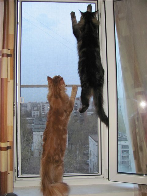 Мейнкуны считаются довольно умными и сообразительными. НО! У них напрочь отсутствует страх высоты...
