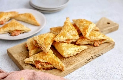 Приготовить эту закуску из слоеного теста с лососем можно за 15 минут. После этого их нужно выпекать всего 20 минут в духовке и готово. Вы можете подать эти закуски из слоеного теста на праздник, Новый год или взять с собой на