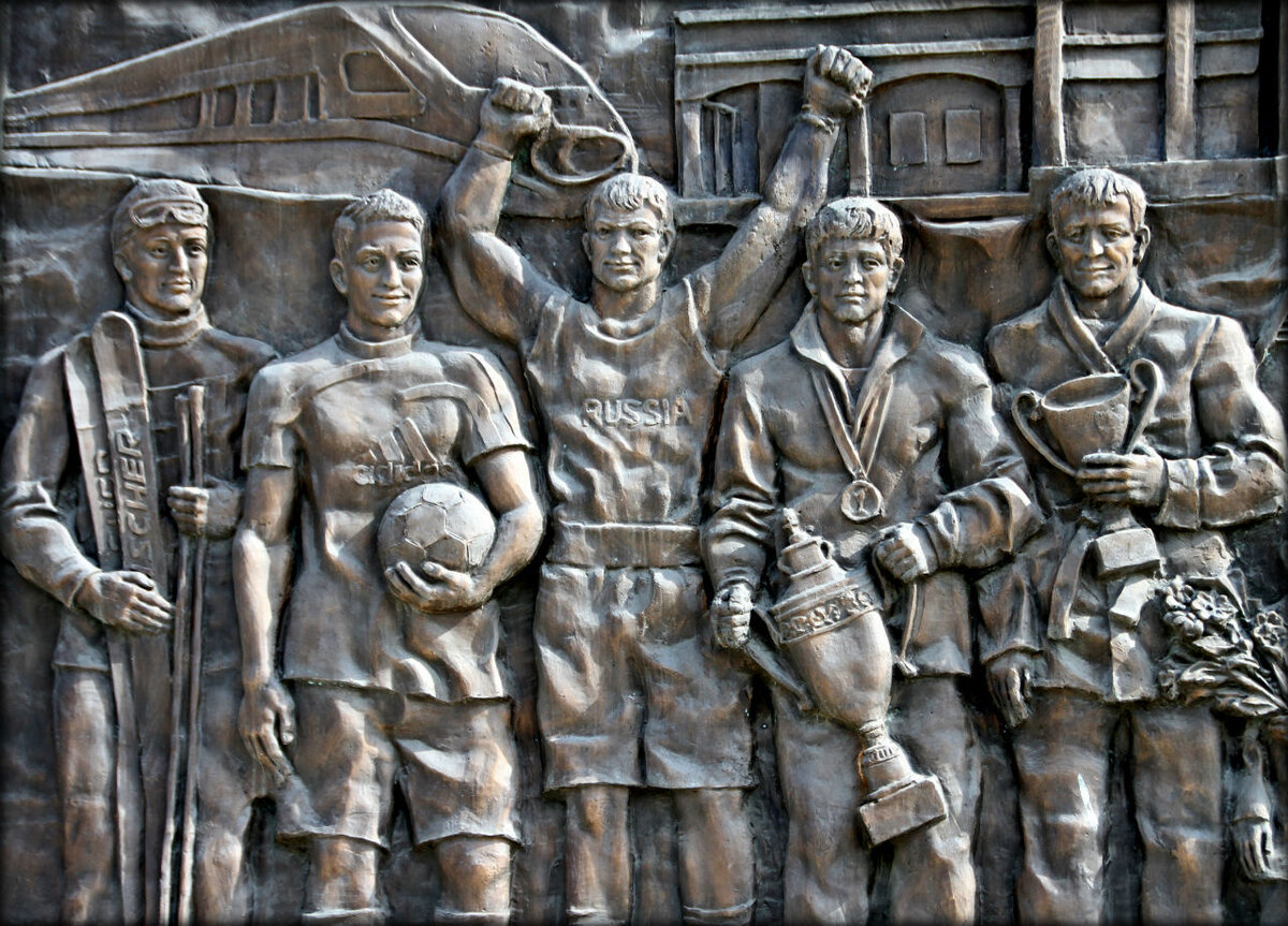 Памятник последнему защитнику Брестской крепости лейтенанту Уматгирею Артагановичу Барханоеву. Офицер изображен во весь рост на фоне фрагмента крепостной стены.