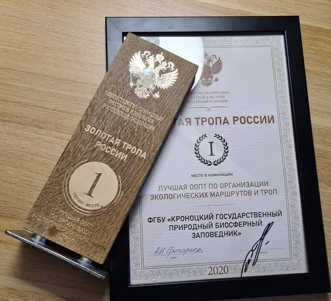 Кроноцкий заповедник занял I место в номинации "Лучшая ООПТ по организации экологических маршрутов и троп" во всероссийском конкурсе "Золотая тропа России", организованном Минприроды РФ.