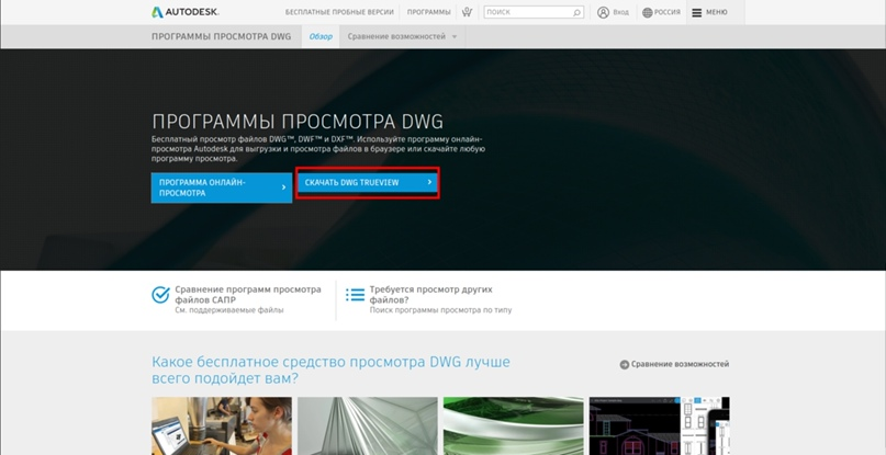 Для того чтобы скачать программу, необходимо перейти на сайт https://www.autodesk.ru/products/dwg и скачать программу.