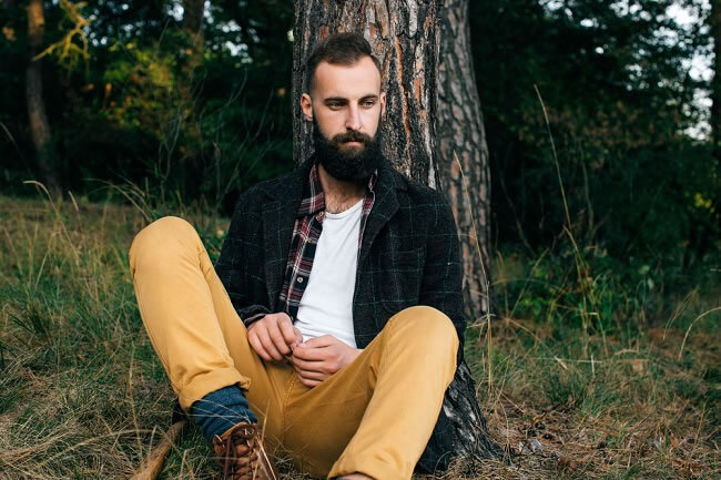 Тут нужна густая ухоженная борода, дополняемая неклассическими брюками, высокими ботинками и клетчатой рубашкой. Футболку и куртку подобрать к этому стилю труда не составит.