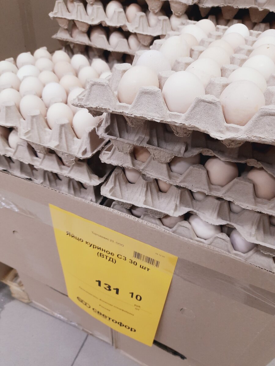 Яйцо куриное С-3, среднего размера. Цена 131 рубль за 30 штук.