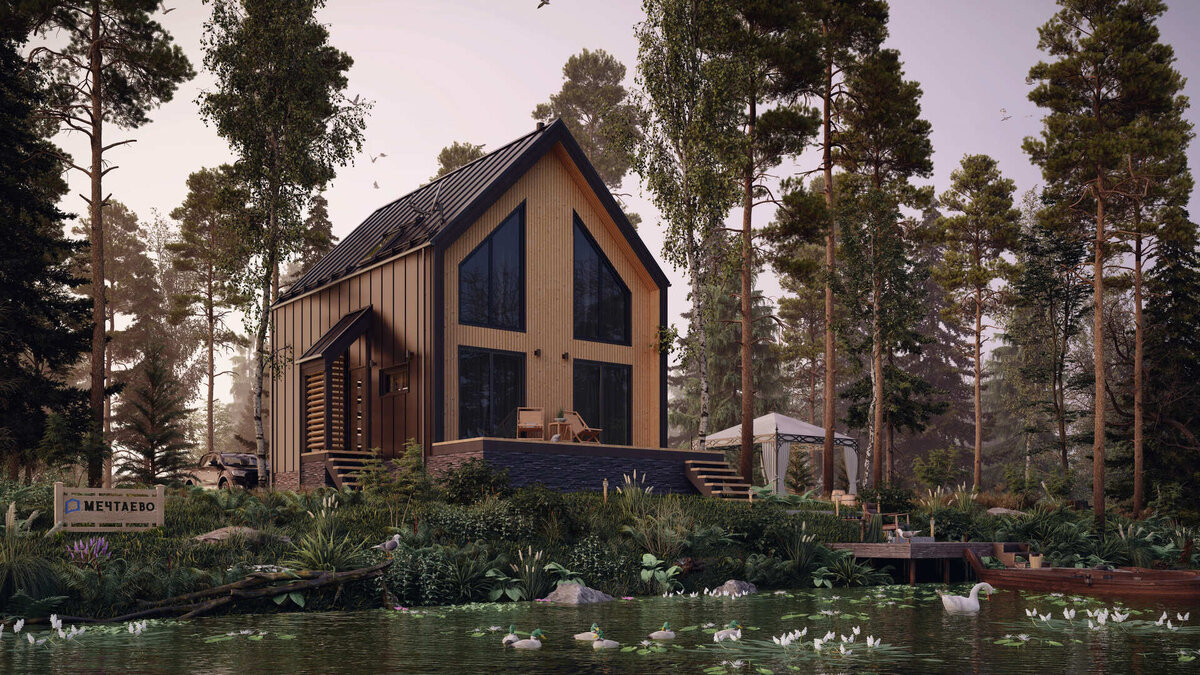 Ламповый деревянный фасад, панорамные окна, двускатная крыша... Это барнхаус, господа. Модный архитектурный стиль для современных людей.
