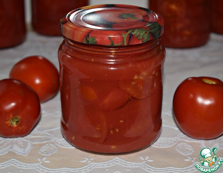 И так помидоры в собственном соку. Здесь получается двойная польза — помидоры можно с удовольствием съесть, а домашний томатный сок выпить. Красота!