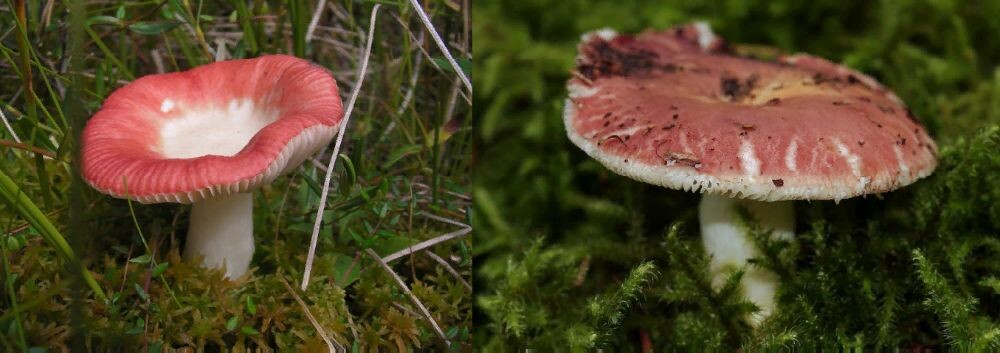 Слева: Сыроежка "жгуче-едкая". Справа Сыроежка съедобная