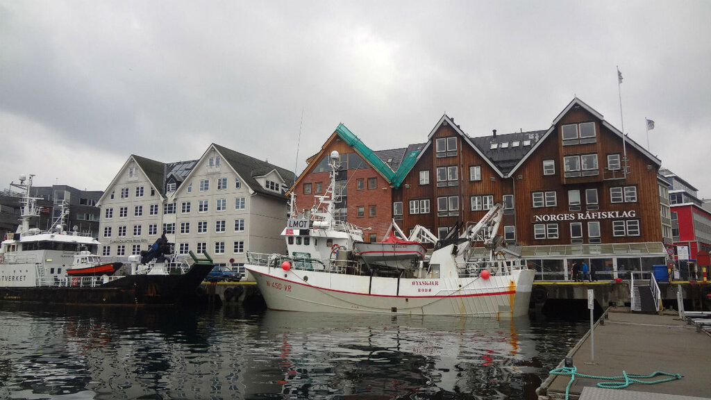 Весь Тромсё совершенно спокойно можно проехать на велосипеде. Большинство улиц имеет выделенную под эту полосу. Этим пользуется большое количество местных жителей, хотя чаще всего я видел именно спортсменов на велике. На самой высокой части острова основной жилой массив соседствует с лесопарком и прудами. Сложно выделить богатое убранство этого, наверняка элитного района, относительно всего острова. Просто дома поновее.Спускаясь по склону практически сразу попадаешь в исторический центр. Здесь старые норвежские дома перемешены с бизнес-кварталами, гостиницами, банками. Красивое здание школы очень выделяется на фоне других домов. Очень выделяется здание публичной библиотеки своим hi tech дизайном. В этом же здании расположен кинотеатр. И бесплатный туалет. Да да.Как и в любом городе, есть своя главная улица — свой "Невский проспект". Здесь самое большое сосредоточение классический норвежских построек. Занятные дома, хотя и не скажешь, что они какой то уникальной архитектуры. Хотя о каких изысках старого фонда можно говорить в заполярье? Местным жителям повезло. Температурный минимум — всего -18 градусов из-за близости Гольфстрима.Занятно, но в Тромсё нет макдональдса, только бургер кинг, и тот полупустой даже в воскресный день. Норвежцы видимо все таки за здоровое питание. Бургеры предпочитают дети.На мост в Тромсдален попасть легко, и мимо него не промахнуться. Его видно еще сверху Тромсё. Бодрым шагом по нему идти около 10-15 минут, но если вам повезет с погодой, то на нем можно и на полчаса застрять. Здесь панорамные виды на залив и горы. Тромсдален встречает всех, кто пересек залив по мосту, Арктическим собором. Пожалуй, самое колоритное и известное здание в городе — лютеранская церковь в стиле модерн, построенная в 1965 году. Под крышей собора висят колокола, которые периодически звонят. Меня этот звон буквально оглушил, в момент когда я стоял прямо у входа в музей. Очень громко и неожиданно.Самым атмосферным местом в Тромсё, где можно почувствовать Норвегию я бы назвал причал для рыболовецких судов, расположенный справа от моста в Тромсдален. От судов пахнет рыбой. На причале стоит несколько ресторанчиков, в которых подают само собой то, что недавно поймали рыбаки. Вода даже здесь очень прозрачная. Видно дно. Прямо у берега плавают стайки рыб довольно крупного размера, хотя, конечно, они еще маловаты для ловли в промышленном смысле. Норвежским котам на корм только если.Отсюда и прекрасный вид на мост и собор. Чуть правее рыболовецкой бухты стоит причал для круизных лайнеров. У меня на глазах начал швартоваться огромный борт. О его приходе возвестил гудок такой силы, что не припомню, чтобы я слышал что-то подобное. Впечатлило.Путь назад к аэропорту я проделывал зигзагами, т.к. у меня была куча времени, чтобы обойти основную часть города. Я исследовал улочки, которые мне были интересны, поднимаясь все выше и выше. Интересно, но при всей статистической зажиточности Норвегии, ни о какой вычурности жилых домов речи и быть не может. Да, у большинства семей свои дома, как правило — двухэтажные, квадратные. Самая обычная облицовка. Никаких изысков. Северным людям это ни к чему.