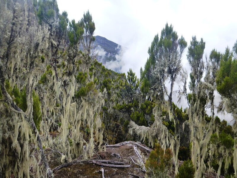 Но с набором высоты волшебный лес стал редеть. И вскоре появились сенеции - чудесные растения. Самые высокогорные из растущих на Килиманджаро. Выше чем сенеции никаких крупных растений не растет. Да и вообще никаких. Дальше только мхи да лишайники.