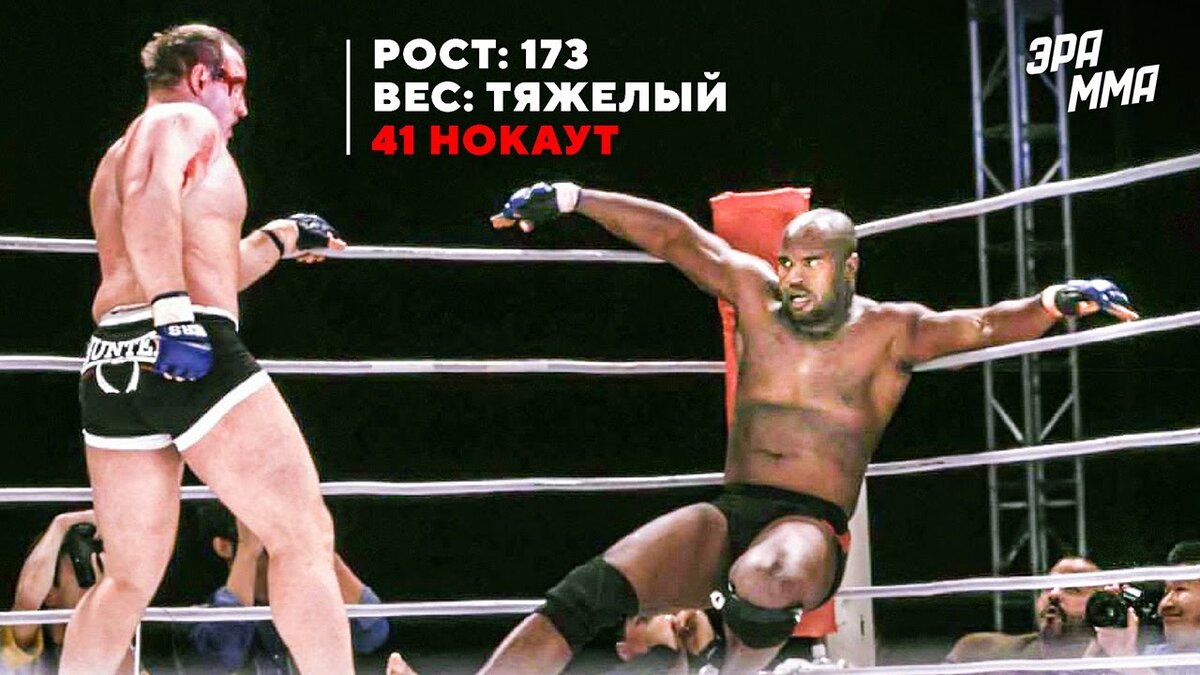 Игорь Вовчанчин (слева) нокаутирует Романа Тикунова в финале турнира «Мистер Силач Сэкай», Минск, 1996 г.