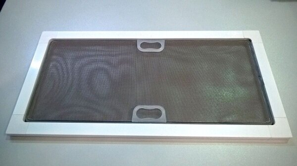 Внешне сетка выглядит как алюминиевая рама, соответствующая размеру открывающейся створки окна, со вставленным нейлоновым полотном. Размер ячейки полотна подбирается в соответствии с задачами, которые будет решать москитная сетка, и варьируется в пределах от 0,3 до 1,2 мм.