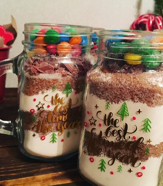 В неё слоями выложить ингредиенты для печенья, которое приготовит сам хозяин подарка.