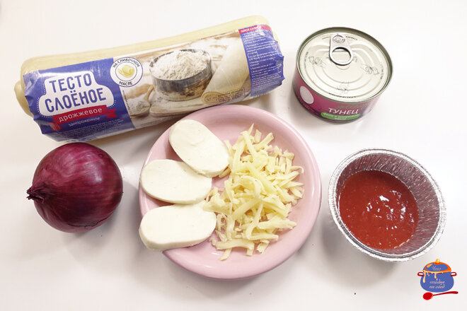 Чтобы наши быстрые мини-пиццы были действительно быстрыми, возьмем уже готовое тесто. Мне очень понравился вариант со слоеным дрожжевым тестом.