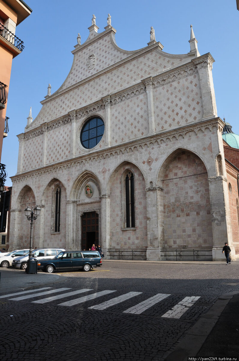 Сейчас здесь живет более ста тысяч человек. По нашим меркам небольшой городок. Но ещё в средние века признавалось что город Виченца большой.Ну как в большом городе без своего кафедрального собора. Его построили ученики знаменитого Палладио, подражая ему. Строили на фундаментах старинных церквей 8-10 веков.Получился он очень большим. Снаружи