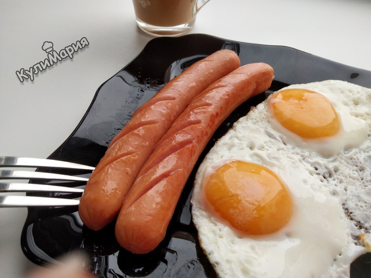 Завтрак: Глазунья с сосисками