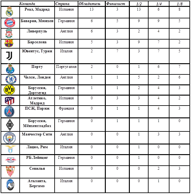 Клубы дошедшие до плэй-офф ЛЧ-2020/2021... каковы их успехи в предыдущих сезонах этого турнира?