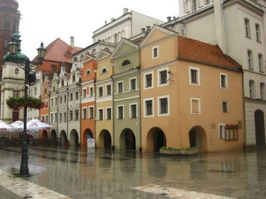 Восемь узких трехэтажных домиков, построенных в XVI веке и объединенных одной аркадой, расположены на центральной площади Легницы, называемой Рыночной. Эти домики, выкрашенные в разные цвета, как раз и поясняют название площади. Дело в том, что ранее все пространство нынешней главной площади занимали рыночные ряды, где торговали разными товарами, в том числе и