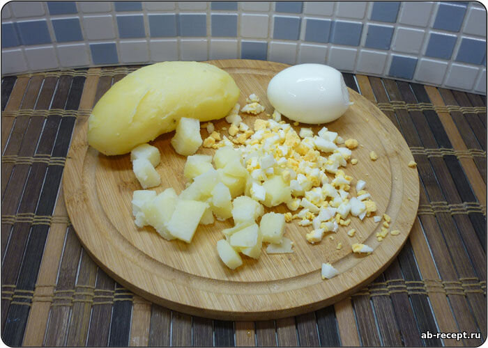 1. Картофель и яйца отвариваем, остужаем и мелко натираем.