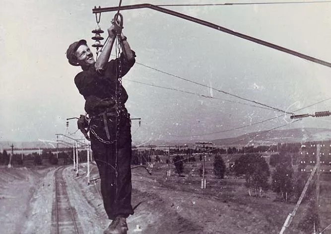 Володя не стал задерживать, быстро взобрался вверх, привязался к столбу. Только дотронулся до проводов, раздался страшный треск посыпался сноп искр и человек завис между небом и землёй.