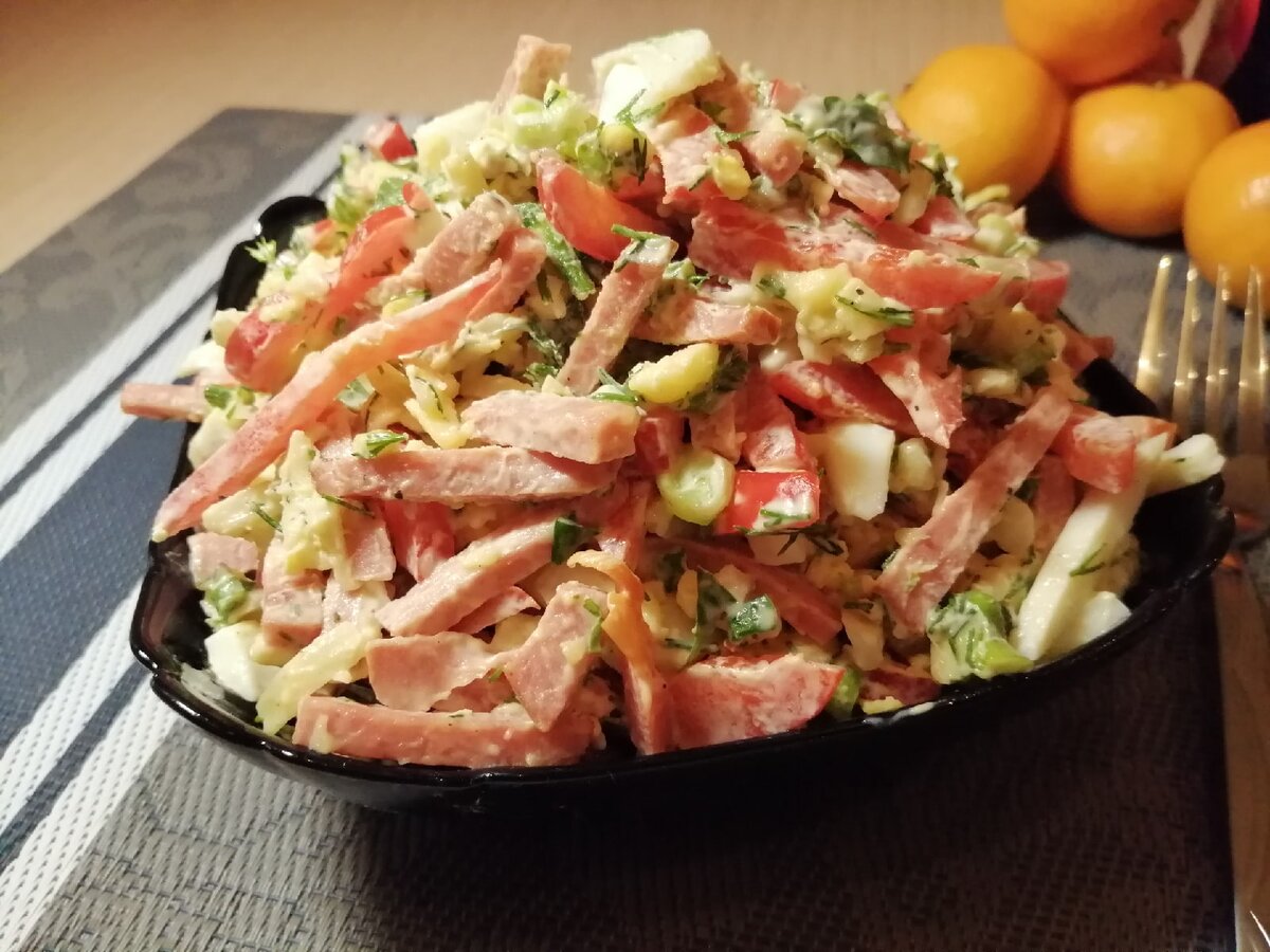 Доброго времени суток всем, кто зашел на наш канал. Сегодня будем готовить вкусный и простой салат. Рецепт достаточно бюджетный, да и готовится салат очень быстро. Продукты входящие в состав салата отлично гармонируют между собой.