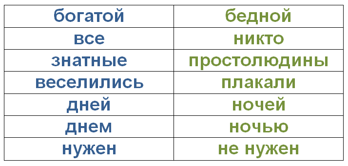 - Составьте таблицу, выписав из нее слова, противоположные по смыслу.