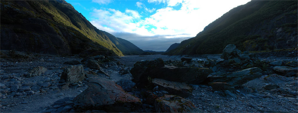 Вот что я всё о знаках и о знаках! Ледник Франца-Иосифа тоже штука интересная. Казалось бы, ледник и ледник, в Редмонде можно хоть каждый день по вечерам отъехать куда-нибудь повыше и на ледники лазить, если так уж хочется. Совершенная невероятность ледника Франца-Иосифа состоит в том, что он лежит прямо на земле. Внизу. На плоскости. Рядом с морем. Врезаясь прямо в тёплые влажные джунгли. А новозеландские папоротники, между прочим, выглядят ну совершенно как пальмы.И вот лежит посреди всего этого тёплого и зелёного великолепия огромная ледяная колбаса и смотрит прямо на нас своим ртом-пещерой, из которого холодная речка вытекает. Совершенно непонятно, откуда это всё здесь. Но точно не зря: ледники Франца-Иосифа и Фокса сейчас делают то, что ледники сделали раньше во Фьорлленде. Красоту.