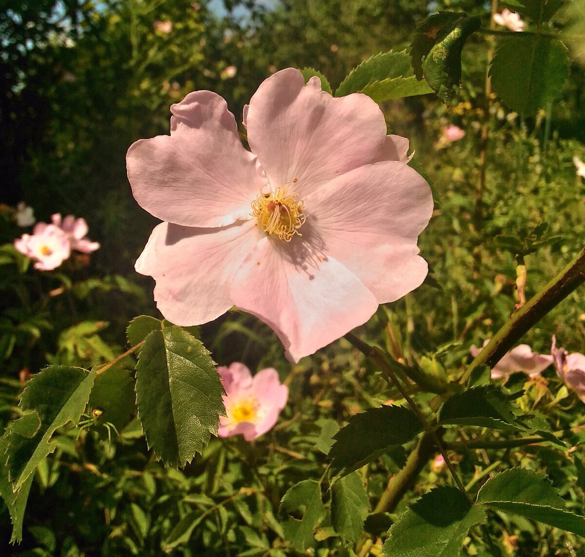 Кустарник шиповник соответствует всем требованиям для колючей изгороди. Он неприхотлив, а его ветви покрыты короткими и крепкими шипами с загнутыми кончиками. Даже во время сбора ягод сложно уберечь руки, чтобы не пораниться. В июне на шиповнике распускаются крупные цветы розового цвета, приятный аромат которых распространяется по всей округе. В конце лета начинают краснеть плоды, и растение снова приобретает праздничный вид.