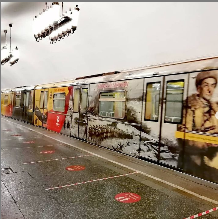 Смотрите, в каком необычном поезде можно прокатиться в Московском метро 🤗 Данный состав носит название - "Народный ополченец". Вообще у Московского метрополитена несколько поездов имеющих собственные имена, присвоенные в честь каких-либо событий, юбилеев, или в рамках тематических акций. Их вагоны оформлены тематически не только изнутри, но и