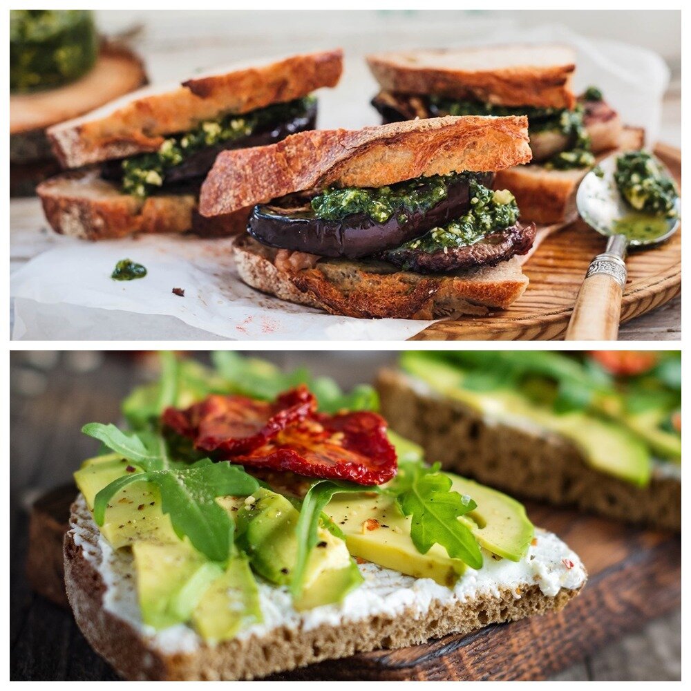 Бутерброд с баклажанами и соусом песто