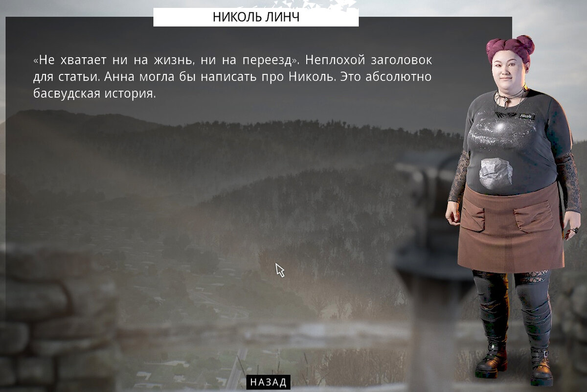 Просто мне не понравилась Анна как девушка – и внешне, и по раскрытому нам характеру. В игре часто упоминается про ее вредные привычки, что уже не делает ее привлекательной.