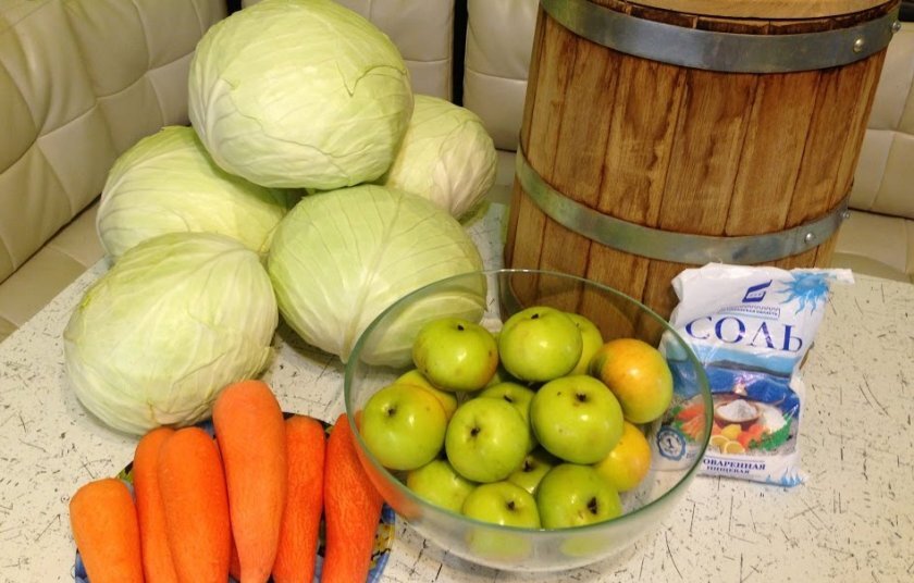 Кроме засолки бабуся в своем домике в деревне капусту еще и квасила. Здесь соотношение капусты и соли было определенное: на 30 кг шинкованной капусты 350 г соли, моркови тертой 3 кг. На дно больших четырехведерных эмалированных бачков кладутся чистые зеленые листья от капусты, сверху небольшой ломоть ржаного хлеба, его тоже прикрывают зеленым капустным листом. Заполняют бачки капустой, закрывают деревянными кружками, на кружок – гнет. Держат в доме дней 5-6, протыкают деревянной палкой, чтобы выпустить газы. Вот с этой квашеной капустой бабуся через неделю творит чудеса. Пересыпает ей осенние яблоки: мочение яблок она не признает. Причем вся процедура проводится только в стеклянной таре, чтобы дальше капуста не перекисала.