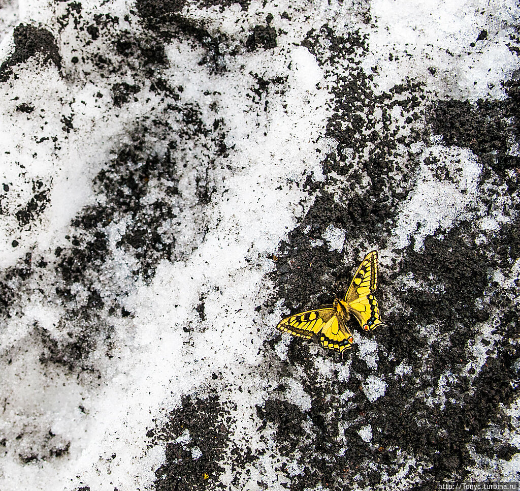 Это я фоткаю по дороге на вершину, то есть отделилась от группы, не хотелось бежать куда-то когда вокруг такая красота. Важнее пофоткать вокруг, а вершина далеко и не особо надо на нее забиратся, думала так и шла себе по следам группы и фоткала. Не было у меня цели добратся и забратся, я наслаждалась тишиной и красотой природы. Даже бабочку нашла на снегу! Бабочка на снегу на высоте примерно 2200 м. Как сюда долетела?