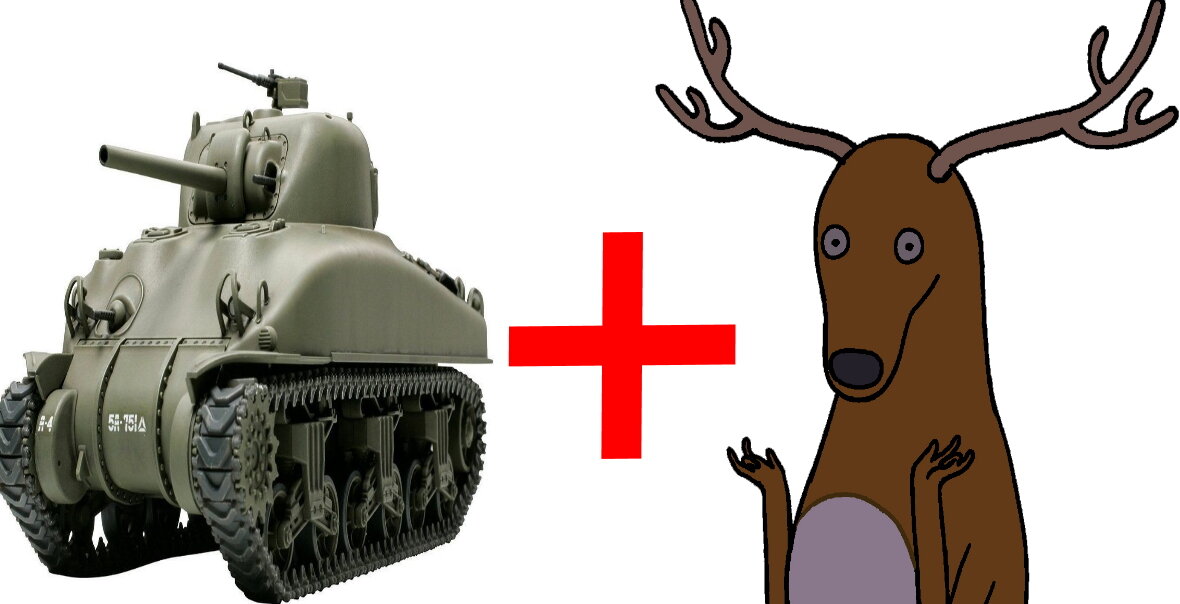 Но у Рудольфа все-же есть своя фишка. И это — размеры. Это самый большой Шерман. А наличие рогов делает этого танко-оленя похожим... похожим.... на гибрид сарая, оленя, танка, корабля....Может немного Санта-Клауса. Гибрид сарая и Санта-Клауса🤪. Очень странная штуковина.