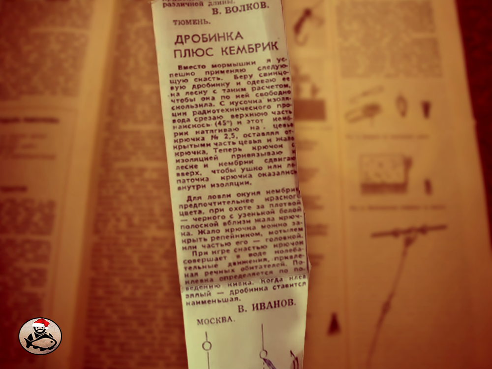 Недавно нашёл советский журнал 1958-х годов "рыбоводство и рыболовство". Там есть вырезка про рыболовные снасти, где показано как наши деды делали уловистые мормышки без пайки за пару минут и успешно ловили на них.