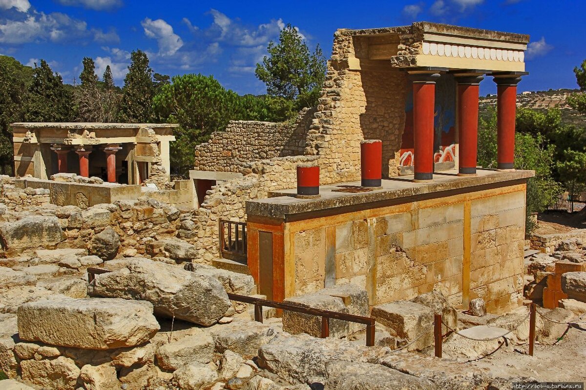 Ираклион город интересный. Есть там одна забавная достопримечательность, которая манит туристов. Кносские развалины — Лабиринт Минотавра. По большому счёту, все эти развалины есть обычный новодел за который берут деньги. На развалины надо приезжать чем раньше, тем лучше, к полудню начинают прибывать организованные тургруппы, а эти типы всегда мешаются))) Если самоходом, то возле Хераклионской автостанции есть отдельная стоянка с кассовой будкой, оттуда отправляются автобусы до Кносса. Цена билета вроде где то 1,70Е в один конец. Ехать минут 15 максимум. Кносс конечка. Собственно от этой будки и отходит автобус к Минойскому дворцу