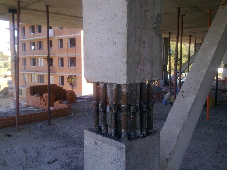 - стыков арматуры, расположенной в железобетонных конструкциях в несколько рядов;