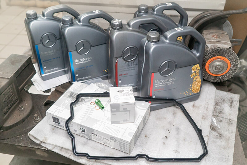 Для установленного бензинового мотора M274 мы использовали оригинальное масло Mercedes 5W-40 из листа допуска 229.5.