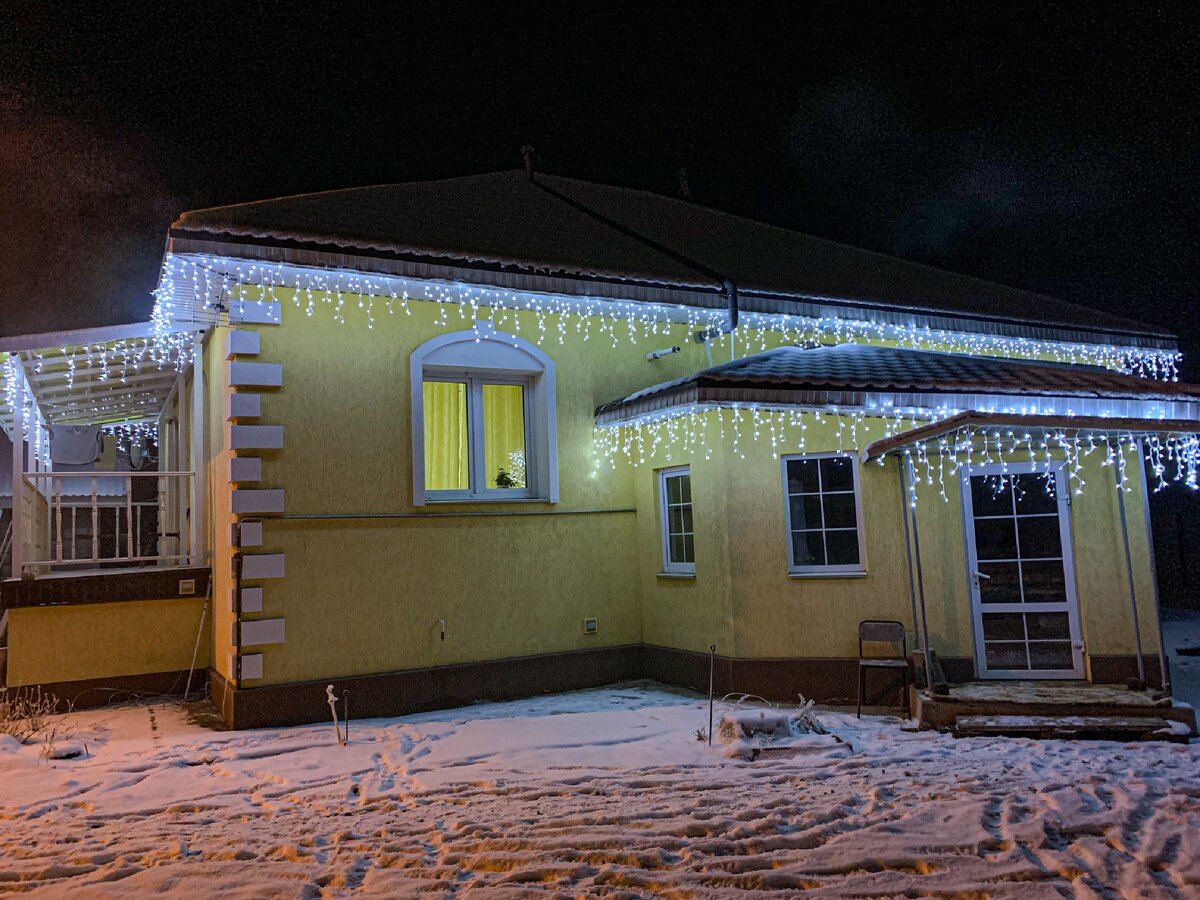 После того как все было закреплено ,я соединил гирлянды в цепь. И вывел провод внутрь дома через вентиляцию.