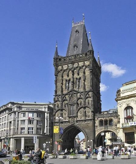 Около станции метро «Намнести Републики» расположена старинная Пороховая башня – темное строение в готическом стиле, которое стоит прямо посреди улицы. Эта башня ранее служила для защиты города от нападений неприятеля. Ее построили на том месте, где когда-то были городские ворота.